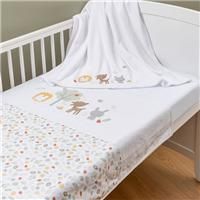 The treetops bedding set includes a coverlet, fleece blanket and fitted sheet - everything you need to dress your baby's cot or cotbed. The overlet is printed with adorbale forest animals un a soft unisex colour palette. The fleece blanket is generously sized and super-soft, perfect for snuggling under. The set is complete with a white fitted sheet. Features: Coverlet 100 x 120cm Fleece blanket 100 x 120cm Fitted sheet 140 x 70cm Specifications: Dimensions: H: cm Colour: Multi Model Number: 9918TT - Manufacturers part number: 31024662