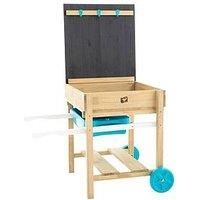 Your little one will love digging for treasure in thisTP Deluxe Sand and Water Table! Kids aged 2+ willlovebuilding sandcastles and splashing water in the splash tray. Your little explorer can even make notes of their discoveries, using theworking blackboard! To keep things neat and tidy, the bold plastic hooks can hold their digging equipment, while a bucket and spade can be put away on the storage shelf. It is a compact little world of creativity and exploration for junior adventurers. With built-in w...
