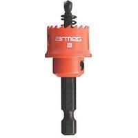 Holesaw designed specifically for quick drilling through sheet steel. Can be used in mild steel, stainless steel and aluminium up to 1.6mm thick. For use with impact drivers. Flared body depth stop for safety and easy tool removal. 0.6mm slimline kerf provides reduced resistance for rapid drilling. HSS cutting edge with 8% cobalt for extra durability. 8 teeth per inch for high smoothness of cut. Internal spring automatically ejects the metal disc for hassle-free drilling. Cuts Sheet Steel 26mm Arbor Len... - Manufacturers part number: 1009R
