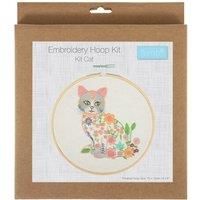 Trimits Embroidery Hoop Kits - 15cm 6” Beginner Starter Set, Includes Bamboo Hoop Threads Cloth Needle Backing & Instructions, Floral Cat
