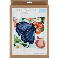 Trimits Half Stitch Cross Stitch Cushion Kit, Cushion Back Included, Pre Printed Canvas, Yarn and Needle Included 40 x 40cm (15.75 x 15.75in), Butterfly