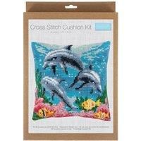 Trimits Cross Stitch Cushion Kit, Cushion Back Included, Pre Printed Canvas, Yarn and Needle Included 40 x 40cm (15.75 x 15.75in), Dolphins