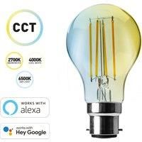 Features: £ 7W = 60W. £ 806 Lumen. £ Colour Changing Temperature. £ Wi-Fi Enabled. £ Dimmable Via App. £ App/Voice Controlled. £ Works with Amazon Alexa. £ Works with Hey Google. £ Easy Setup. £ Set Schedule & Timers. £ Group/Room Control or single control. £ Downloadable App Technology:Filament LED Shape:GLS Colour Temperature:Colour Changing Temperature Cap:B22 Wattage:7w Equivalent Wattage:60w Lumens:806 Finish:Clear Mode:16 colour Range:Remote Control 5 Metre Dimmable:Yes Life (Hours):25000 Voltage:220-240 - Manufacturers part numbers: Status_60SSFGCCTBC1PKB|30767713