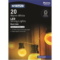 Good to know- Suitable for indoor and outdoor use - great for your BBQ parties or Christmas- With 20 bulbs on a 13.7 m long string you can decorate a whole room- Warm white light will help you to create an inviting and festive atmosphere anywhere - Manufacturers part number: Status_HALMSTAD20MWW
