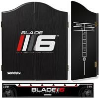 Robust veneer-effect dartboard Blade 6 design including a co-ordinating Blade 6 printed Oche Sticker. Dartboard not included. Blade 6 printed Cabinet with Veneer-effect finish. Blade 6 Cabinet suitable for all Winmau Bristle dartboards. Includes a coordinating Blade 6 oche sticker to help complete your darts zon. Includes fixtures and fittings. Cabinet dimensions: H60, W50.5 (closed), W120 (open), D7.2cm. Cabinet internal dimensions: H47.6, W47.6, D5.4cm. Size: H62.5cm, W52.5cm, D8cm. Manufacturers 1 ye...