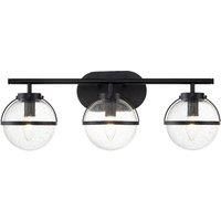 3 Light Wall Light Features: The Hollis 3 Light Wall Light is reflective of the Art Deco inspired lights of the 1920's. Finished in Black and made from Steel with Clear seeded Glass. IP44 rated Wall Light Compatible with dimmable lamps 3 x 60W E14 Specifications: Dimensions: H:230.0 x W:60.6 x D:19.3 cm Colour: Black Guarantee:General 2 Years Manufacturer's Guarantee Material: Steel, Clear Seeded Glass Model Number: HK-HOLLIS3-C-BK-BATH