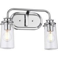 2 Light Wall Light Features: There's so much to love about the reclaimed style of this 2 light bath light from the Braelyn collection. The vintage industrial design is punctuated with Clear Seedy Glass shades, reminiscent of glass jars that were a staple of 19th century American life. The Polished Chrome finish enhances this style Wall Light Compatible with dimmable lamps 2 x 40W E27 Specifications: Dimensions: H:259.0 x W:37.4 x D:14.5 cm Colour: Polished Chrome Guarantee:General 2 Years Manufacturer...