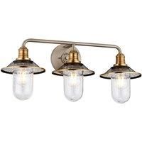 3 Light Wall Light Features: Rigby is inspired by the American barn light, reborn as a chic interior retro classic. Features such as cast socket covers, mesh shades and canopy details combine the best in both vintage and industrial design elements. Available in a two-tone finish of Antique Nickel and Heritage Brass or Polished Chrome. With clear seeded glass lamp protectors, these Rigby models are suitable for use in bathrooms Wall Light Compatible with dimmable lamps 3 x 40W E27 Specifications: Dimensi...