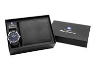 The elegant Ben Sherman Mens Black Faux Leather Strap Watch and Wallet has a round silver case watch and is fitted with a black strap. It has a navy blue 3 Hand dial. This timeless design will compliment every outfit. It comes complete with a watch box and 2 year warranty. Watch and Wallet Gift Set, Black Strap, Blue 3 Hand Dial. Watch features:Analogue display. Blue dial. Case width 40mm. Metal case. Black coloured faux leather strap. 21mm lug width. Battery power. Quartz movement. Water resistant to 3...