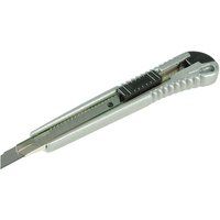 Aluminium alloy with 12-section, retractable 9mm blade. Chrome-plated steel blade holder and plastic push button for blade. Hanging hole for storage. Length 140mm. Compatible with Silverline Snap-Off Blades. - Manufacturers part number: Silverline_789397