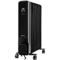 For bigger spaces that need steady, comfortable heat, this 2.5kW oil-filled radiator delivers that cosy, central-heating feel without firing up the whole system. The 11-fin design spreads warmth evenly and holds heat well, so bedrooms, lounges and open-plan spaces stay snug for longer with less on-off cycling. Set your preferred temperature on the clear LED display, make quick adjustments from the sofa with the remote, then let the adjustable thermostat maintain a consistent, quiet background warmth while you watch a film, work late or get the kids ready for bed. Smooth-rolling castors mean you can park it wherever heat is needed, and the low-glare design sits neatly by a wall. Ideal for evening top-ups, overnight comfort on low settings, or drying laundry indoors. | Daewoo 2.5kW Oil‑Filled Radiator, 11‑Fin, LED Display & Remote in Black - Manufacturers part number: Daewoo_5024996989908