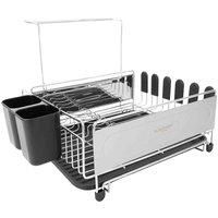 This deluxe dish drainer will make washing up a breeze. It is generously sized to hold plenty of plates and bowls, with extra room for cups, mugs, glasses, and cutlery.The drainer is made of high quality stainless-steel which allows excellent resistance to rust, corrosion, and scratches.As well as a wine glass rack, cutlery holder and anti-slip rubber feet, the holder has holes in the bottom so that excess water can drip away. With space to dry up to 6 cups, mugs, or glasses the drainer includes non-scr... - Manufacturers part number: 69129