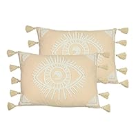 Furn. Ashram Eye Twin Pack Polyester Filled Cushions Sblush Invite tranquillity and charm into your home with this tufted abstract design inspired by the symbolic evil eye. Known as the symbol of protection - these cushions will sit perfectly upon any sofa or bed in a modern or contemporary setting. Features: Featuring an abstract tufted design inspired by the symbolic evil eye Complete with a plain reverse, side tassel edging and hidden zip closure Made of 100% Polyester, making these cushions super so... - Manufacturers part number: K2-ASHRAME/HF5/BLS