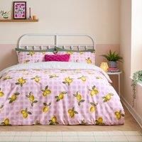 furn. Heya Home Gingham Lemons Duvet Cover Set – Reversible Soft & Durable Polycotton Fruit Bedding (Pink - Single)