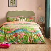 furn. Meadow Escape Duvet Cover Set – Reversible Abstract Wildflower Cotton Blend Easy Care Bedding (Green/Pink - King)