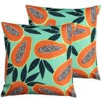 Furn. Papaya Outdoor Twin Pack Polyester Filled Cushions Aqua Amongst the green leaves, features a vibrant Papaya fruit print in bold oranges and tropical greens. Pop it in your outdoor space, it is sure to stand out. Features: Featuring a vibrant abstract print of tropical Papaya fruit Complete with standard knife edging and hidden zip closure Made of water resistant polyester, this outdoor cushion is designed to withstand showers and spills This cushion is sponge clean only Designed, printed and made ...