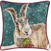 In typical realistic acrylic hand-painted, printed quality and rich colours, a Hare keeps hunger at bay in the falling snow by nibbling on some festive berries. A charming and playful cushion to put out during the holiday season while still preserving a rustic country sense to your home decor. Features: Featuring an acrylic hand-painted portrait of a Hare surrounded by snowflakes, nibbling on some festive berries Complete with a soft plain velvet reverse, piped trim and zip fastening Made with 100% Poly... - Manufacturers part numbers: CHRHARE/HF2/MUL|RPCCXMASHARE43X43MULTI