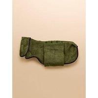 Joules Khaki Drying Coat Drying a dog can be tricky. After a rainy walk, if you (and the walls of your kitchen) haven't been splatted by the wet dog shake off, then you'll have most likely be faced with the back-breaking job of rubbing your dog down with an old towel. This handy drying coat is ultra-absorbent, while the velcro fastenings will ensure a secure fit. It also comes in a water resistant bag - and is machine washable, too. Walkies Available in three sizes: S=W 20cm x D 31cm x H 8cm, M=W 34cm... - Manufacturers part number: 05743