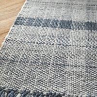 Beautiful Highland Check design with knotted fringe is easy care, washable and made from recycled plastic! It will add a country vibe to your room. Classic blues and greys of this flat weave design will look great in any area of your home. It is Planet friendly - yet so practical!These products have an open weave, which may be prone to snagging like any other woven product when used in high traffic areas (or if your pets have long claws). we recommend using a Rug Grip when laying on hard floors Features...