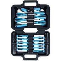 Streetwize Accessories 58 pce Screwdriver and Bit Set in Case This comprehensive screwdriver & bit set from Streetwize is made from chrome vanadium steel, which is a hardened and durable steel. The set is suitable for home and professional use, and the screwdrivers in this set all have a blue soft-grip handle. Comes with a durable case. Depth: 5.5 MM Height: 25 MM Width: 30 MM