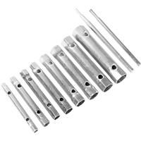 Double ended box spanners in 16 sizes with 190mm sliding bar and wallet: 6 x 7mm, 8 x 9mm, 10 x 11mm, 12 x 13mm, 14 x 15mm, 16 x 17mm, 18 x 19mm and 20 x 22mm. Make all kinds of jobs easier with this double-ended box spanner set. They're often used to remove fittings that are hard to reach, such as deeply set nuts or spark plugs tucked away in a recess. The box spanners come with a soft tool roll to make organisation and transport easier. A 190 mm extension bar is also included, so you can get the maxi...