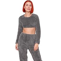 Comfy, stylish and cosy, our teddy fleece cropped top is soft and cosy, making it perfect for lounging around, for use as nightwear, or even for the ultimate working from home look. This item features a scoop neck line and long sleeves.