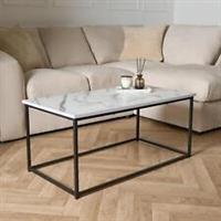 - White marble effect tabletop with sturdy black metal framing. Versatile decorative piece perfect for living rooms, family rooms, home offices or hallways. Stylish and space saving solution for home use.