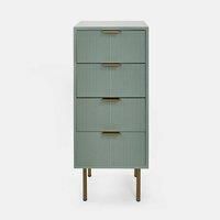 Add a touch of elegance and functionality to your bedroom with the Ribbed 3/4 Drawer Wood Bedside Table. This beautifully designed bedside table combines classic aesthetics with practical storage solutions, making it a perfect addition to any bedroom decor. | OHS Ribbed Bedside Table Modern Bedroom 4 Draw Office Nightstand in Pale Green - Manufacturers part number: HF000196
