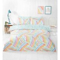 Our So Soft printed bedding range is perfect for a great night's sleep. Cosy and gentle against your skin, made with 180 thread count microfibre, making it non-iron and also durable. This design features an all-over abstract rainbow pattern with a contrasting reverse in aqua and white. Features: 1x duvet cover (230x220cm), 2x matching pillowcases (50x75cm) Easycare fabric Non iron Popper closing mechanism Specifications: Dimensions: H:220.0 x W:230.0 x D:4.0 cm Colour: Multi Guarantee:1 Month Material:... - Manufacturers part number: ARTXXX-KING-MULT