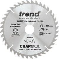 Microgranular TCT saw blade designed for a professional finish in softwood, hardwood, plasterboard, plywood, soft fibre board, particle board and MDF. High-grade alloy steel plate body precision-ground to maintain flatness. Reamed bore to ensure precise fit to spindle and silverbraze to ensure tip is bonded securely to body. Body hardened and tempered to maintain trueness. Laser-etched on reverse. Medium Cut Cutting Width (Kerf): 2.6mm Tungsten Carbide-Tipped Teeth Rake Angle: 15 Anti-Kickback Design No... - Manufacturers part number: CSB19040