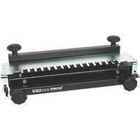 Cuts 12.7mm half-blind dovetails or rebated dovetails in one operation. Clamps up to 300mm width. Steel Tungsten Carbide-Tipped Cutter Laser-Cut Zinc-Plated Steel Template Quick Routing of Dovetails 12.7mm Dovetail - Manufacturers part number: CDJ300