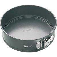 This MasterClass Non-Stick Large Springform Cake Tin with Loose Base takes the hassle out of baking perfectly formed large sponge and fruit cakes. Made of commercial-grade carbon steel with a reinforced non-stick coating, it's designed to provide great results again and again. The cake pan measures 30 cm (12) across, and 6 cm (3) deep. This makes it ideal for party-sized sponge and fruit cakes, and it's also fantastic for baking cheesecakes, or the base tier for a wedding cake. - Manufacturers part number: 30848947