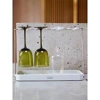 Joseph Joseph Drysmart Wine Glass Drying Rack Wine glasses and champagne flutes are delicate and prone to breaking on standard drying racks. This clever design, however, provides a safer and more secure drying solution for up to four glasses. The hanging rack features a protective, rubberised grip on top, and spaced holders to prevent glasses from clashing and scratching. Excess water collects in the base, which can be poured out easily. When not in use, the rack folds neatly for compact, space-saving s...