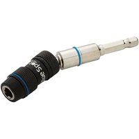 The BlueSpot 1/4" Hex Shank 0-20° Angled Drill Attachment is a magnetic, quick-release bit holder. The main body of the drill attachment is manufactured from S2 steel and the black casing manufactured from aluminium for increased durability. The flexible joint allows for access in hard to reach areas with a 0-20° rotation. - Manufacturers part numbers: 14127|Blue Spot Tools_