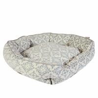 A luxurious choice for any spoiled pet, this stylish patterned bed is the perfect addition to your furry friend's nighttime routine. The faux suede bed comes with a deeply filled base and high scalloped sides, and the indulgently soft plush cotton filling provides your pet the best support for their neck and back. The neutral colour is perfect to suit any home, while the grey floral pattern brings a little touch of fun whether kept in the bedroom, kitchen, or lounge. This pet bed is fully machine washa...
