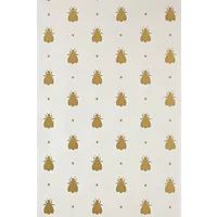 Featuring an enchanting myriad of bumble bees and sprinkled with cheeky polka dots. Showing in metallic gold on cream water based paints - more colours are available. Pattern repeat is 16.10cm 507 - Manufacturers part number: Farrow & Ball_BP 507