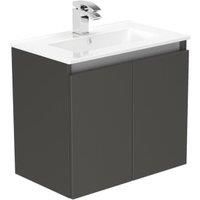 Introducing our remarkable double-door basin unit in a contemporary Midnight Mist finish designed to add a touch of sophistication to any modern bathroom. This stunning piece creates a sumptuous ambiance with its sleek and stylish design. The soft-close doors provide a seamless and ultra-quiet closure adding a touch of luxury to your experience. This unit includes a ceramic basin that combines both style and functionality flawlessly. Made in the UK this exceptional product is delivered directly by the m...