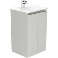 Introducing our stunning double-door floor standing basin unit. With its contemporary design and sleek Pearl Grey finish it effortlessly complements any modern bathroom creating a sumptuous feel. The soft-close doors ensure an ultra-quiet closure. This unit is supplied with a ceramic basin combining style and functionality. Crafted with exceptional quality in the UK it is delivered directly by the manufacturer within just 3 days.