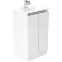 Introducing our stunning double-door floor standing basin unit in a contemporary White Gloss finish. Designed to complement any modern bathroom it adds elegance and creates a sumptuous ambiance. The soft-close doors provide a seamless and ultra-quiet closure. This unit comes with a ceramic basin combining style and functionality. Crafted in the UK with superior quality it is delivered directly within 3 days.