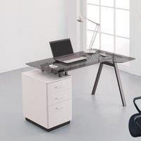 Featuring a modern, smoked glass top on a grey frame, complete with complimenting pedestal in a beautiful white painted finish, the Cleveland luxury desk is sure to attract attention. The toughened glass has been cut into an L shape to maximise work space, whilst the beautiful pedestal contains 2 stationery drawers and a filing drawer, all finished with matching chrome handles. Features and Benefits Open and spacious design - great for the open plan offices and if you want to maximise on your lighting. ... - Manufacturers part number: 30725712