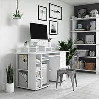 This sturdy computer desk is the prefect addition to any Office or Bedroom. It features a special pull-out panel for your keyboard that can be hidden when not in use. And with two spacious drawers, over 7 storage coves and a triple tier monitor stand, there is plenty of storage space for books, files or discs. - Manufacturers part number: Alphason_