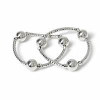 Two Freedom silver stretch bracelets with large polished beads and textured accents, modern shine for everyday wear. Silver tone. Length of bracelet 17cm/6.6in. EAN: 5031830955609.