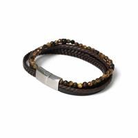 Mix texture and tone with this Uncommon Souls multi-strand bracelet. Combining braided brown leather and tigers eye-style beads, its made for guys who like rugged style with polish. Finished with a secure clasp, its perfect for adding a casual edge to your look. Leather. Bracelet thickness 5mm. Length of bracelet 19cm/7.5in. Diameter 19cm. Total weight of products approximately 0.2g. EAN: 5031830959539.