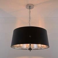 A stylish addition to any homes, this three-light drum chandelier is a statement lighting solution for any room. The three lights are housed within a cylinder drum shade, and a polished silver finish add to the chandelier's classic appeal. It is compatible with dimmers and also suitable for sloped ceilings. Shade Colour: Cream, Grey, Navy, Black on the out side, inner is Silver. Bulbs to be used (not included):40 Watt Max 10 Watt Max LED Shade Diameter: 50cm Shade Height: 21.5cm (size approx) | K LIVIN...