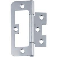 Light duty flush hinges suitable for use on cabinets or cupboards. * Fixed pin * Flush fitting * Countersunk * Steel construction * Nickel plated * Fixings not supplied Eclipse Flush Hinge Bright Zinc 75mm (20 Pack) in Silver Steel
