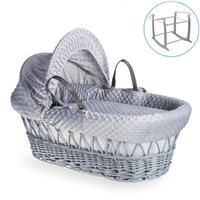 Clair De Lune Dimple Grey Wicker Basket with Grey Deluxe Stand - Grey A sturdy and lightweight wicker Moses basket loving Made in Great Britain with the super soft, plush dot Dimple fabrics that create a super cosy sleeping space for your baby. The basket features an adjustable hood so you can easily keep bright sunlight out of sensitive eyes and off delicate skin. The Deluxe Rocking stand features plastic retaining bars to hold your Moses basket in place & stoppers on the base to lock into a stationary... - Manufacturers part numbers: CL4730GGY/4281GY|30961423