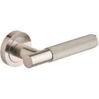 Featuring simple elegant lines and a knurled grip this lever on rose handle adds a beautiful detail to any space. Its versatile design is perfect for both home and commercial settings offering a touch of sophisticated style.