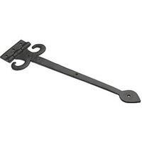 Iron construction. Tudor design with an antique black finish. Ideal for interior and exterior doors, gates, cabinets and other wooden structures. Iron Construction Internal & External Use Decorative Design - Manufacturers part number: 572KK