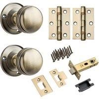 Everything needed is provided in this beehive mortice door knob door pack with an antique brass finish as the door knobs hinges tubular latch strike plate and fixings are all supplied. That means you don't have the inconvenience or extra cost of sourcing other parts elsewhere.