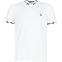 Fred Perry TWIN TIPPED T-SHIRT men T shirt in White , Available in men's sizes. XXL. Free Next Day Delivery and Free Returns on all orders! (EAN:5034604845717) - Manufacturers part numbers: Fred Perry_M1588V-100=M1588-100|M1588-100-2XL